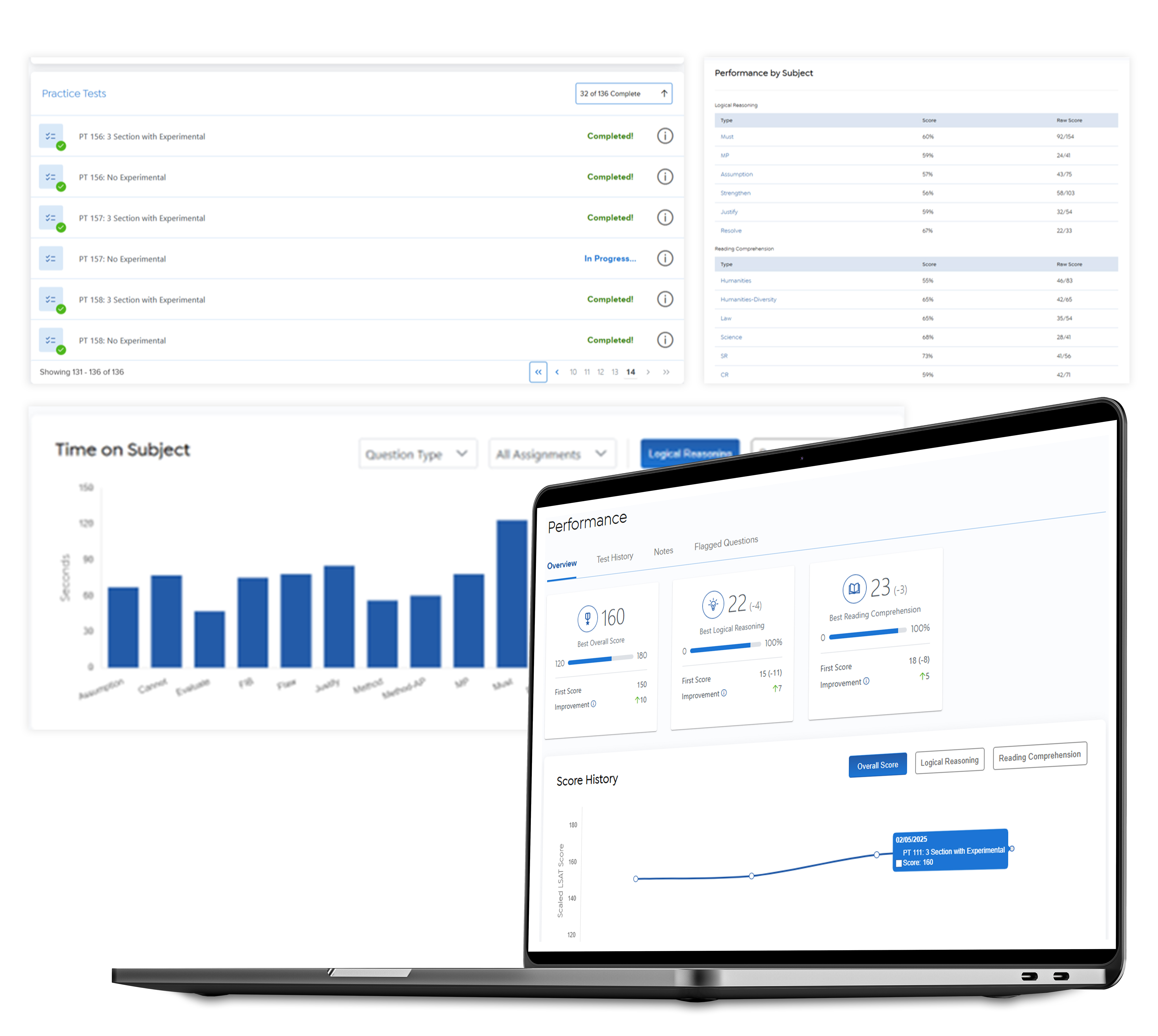Test day shouldn’t be a surprise. You need to practice in the exact same environment you’ll see on the big day. Our practice platform replicates the LSAT testing system and gives you access to 90+ official tests, content-specific drills, and question sets that look and feel just like the real thing. By the time you sit for the actual exam, it’ll feel like just another practice session.